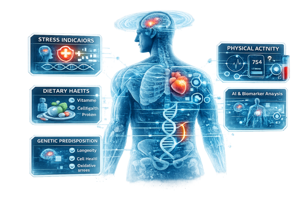 - These inputs are processed through AI-based models to generate actionable longevity insights.